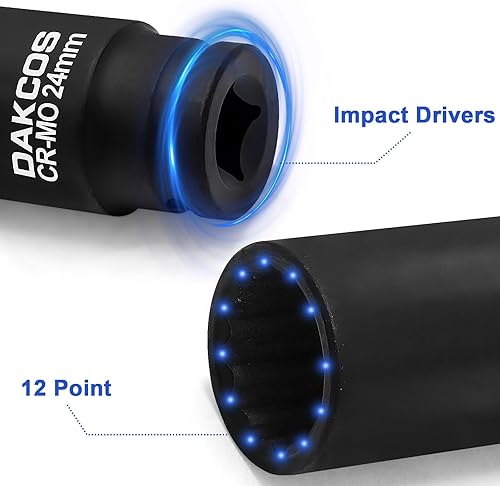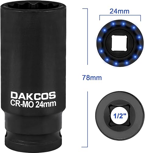 DAKCOS SW 24mm Vielzahn Nuss Schlagschrauber Nuss Antriebswellen Werkzeug Kraft Stecknuss | 12 Kant | 12,5 mm (1/2') | CR-MO