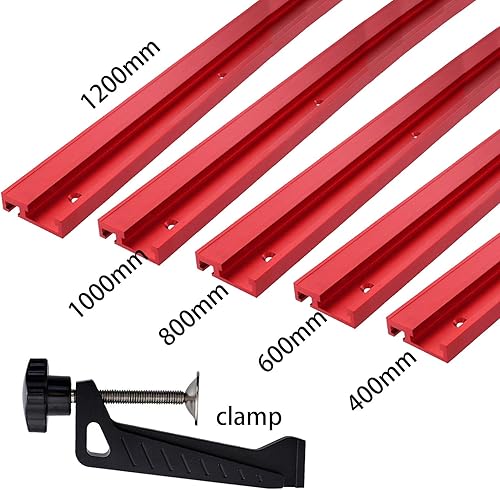 belupai T-Schiene, 45 Typen, Aluminiumlegierung, T-Schiene, Gehrungsschiene mit klebrigem Lineal für Holzbearbeitung (800 mm) Rot