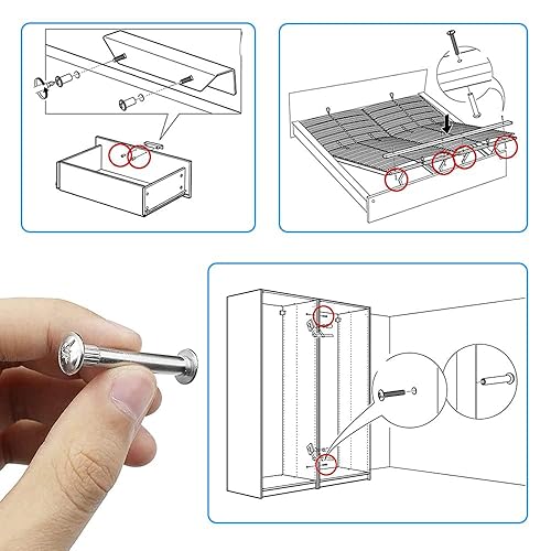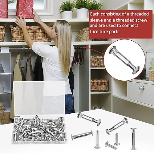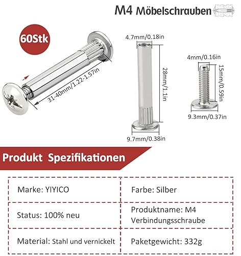 Möbelverbindungsschrauben Schrankverbinder Möbelverbinder Schrauben 60Stk M4 x 31-40mm Möbelschrauben Stahl Vernickelt Hülsenschrauben