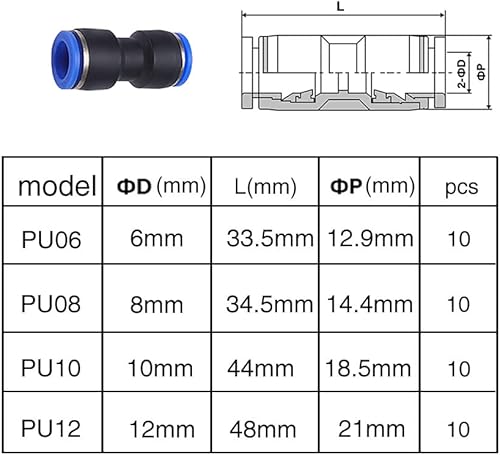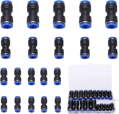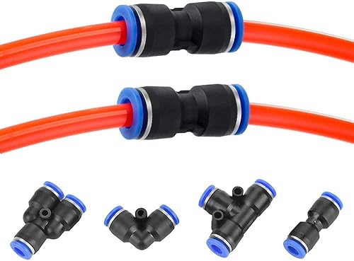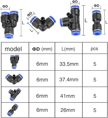 VooGenzek 20 Stück 6mm Air Push Schnellbefestigungen, 4 Form Push In Pneumatik Steckverbinder Pneumatische Verbinder, für Die Schnelle Verbindung von Luftleitungen Pneumatik Steckverbinder