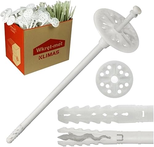Befestigungsmaterial WKRET-MET 100 Stück Dübel Ø 8 mm Dämmstoffdübel Tellerdübel Schlagdübel Kunststoffnagel glasfaserverstärkt LTX Ø 8 x 115 mm