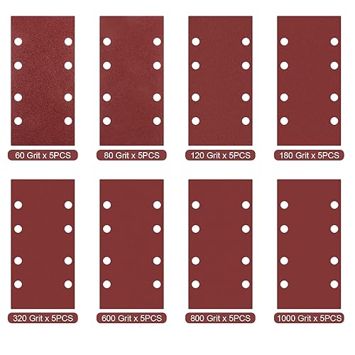 Schleifblatt Set 40 Stück 93 x 185 mm, Schleifpapier Klett Körnung 60 80 120 180 320 600 800 1000, 8 Löcher, Zubehör für Multischleifer, Schwingschleifer, Sander Sandpapier für Holz Metall und Farbe