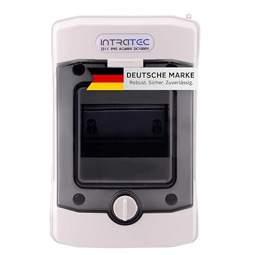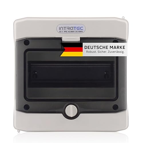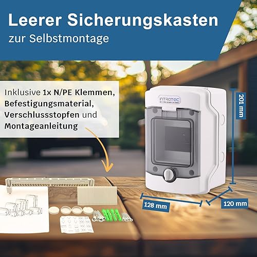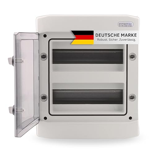 Intratec Sicherungskasten Aufputz, IP65 – Verteilerkasten außen, Feuchtraum-Verteiler für Garten, Keller, Garage und Außenbereich, 2-reihig, 24 Module, 384 x 319 x 144 mm, Grau