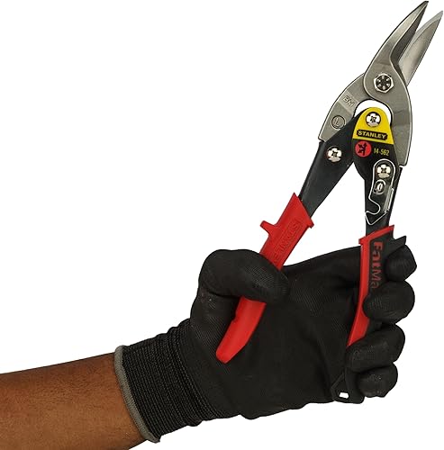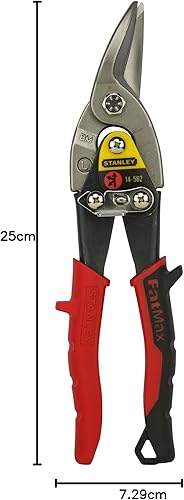 Stanley Blechschere Maxsteel (links, 250 mm Länge, Bi-Material Kunststoffhandgriff, chromveredelt, Einhandbedienung) rot, 2-14-562