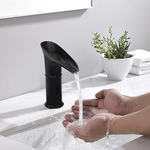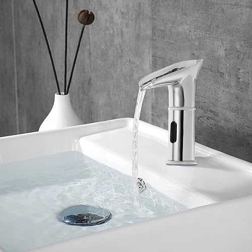 KEESUNG Sensor-Mischbatterien, Berührungsloser Wasserfall-Wasserhahn Infrarot Automatik-Sensor Armaturen Waschtisch Armaturen mit Sensor Einhebel Armaturen für Küchen, Bäder (Silber)