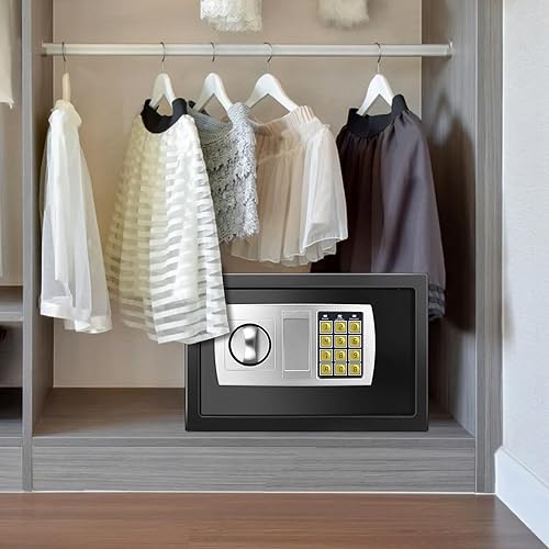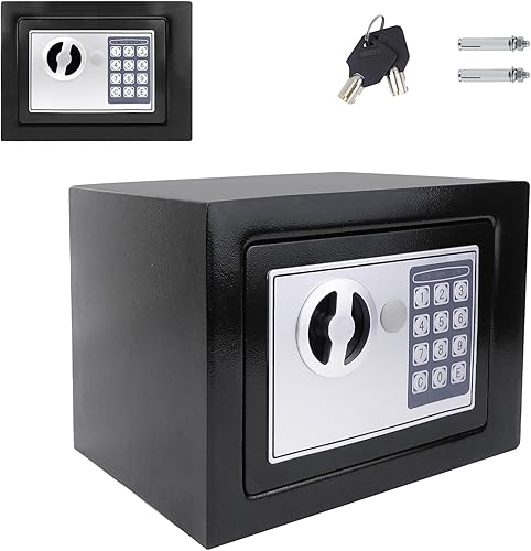8.5L Solide Stahl Feuerfest Tresor, Sicherheit Haus Büro Geld Bargeld Tresor, Medium Tresor Box mit 2 Schlüsseln, Abschließbare Tresorbox, Schwarz Tresorbox, 31 x 20 x 20cm