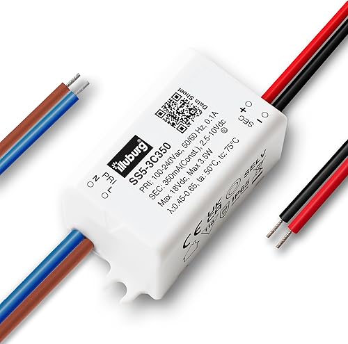 illuburg LED Trafo Wasserdicht IP65 350mA Konstantstrom 11W - 18W Flackerfrei LED Netzteil Treiber Transformator Driver
