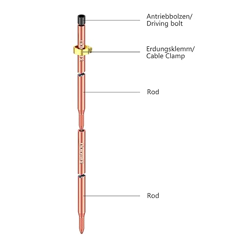 Nucraft Tiefenerder Erder Erdung Staberder Ø20mm Kohlenstoffstahl,0.2MM Rotkupfer Beschichtung mit Klemme SET 1M 3M 4M Zusammensetzung (SET 3M Ø20 3x1000mm)