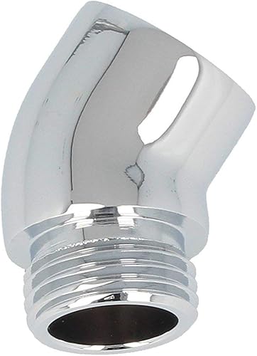 SANTRAS® Premium Winkelstück (schwere Ausführung) 1/2 Zoll zur Verbindung von Duschschlauch und Handbrause im 50 Grad Winkel – Brausekopfhalter aus poliertem Messing Hochglanz verchromt