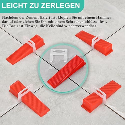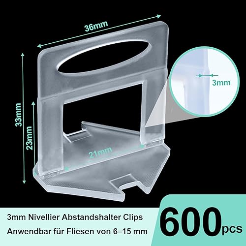 JAMHEXOU 600 Stück Fliesen Nivelliersystem 3mm Nivellier Abstandshalter Clips, Fliesen Fliesenkeile Nivelliersystem Kit Fliesenverlegehilfe für Fliesen Wandfliesen Bodenfliesen Höhe 6-15 mm