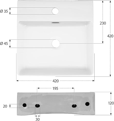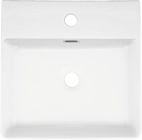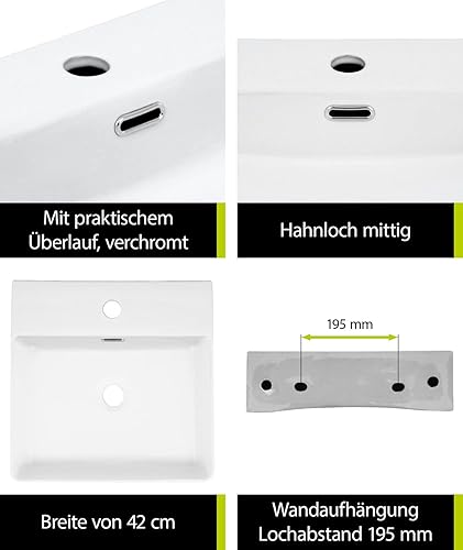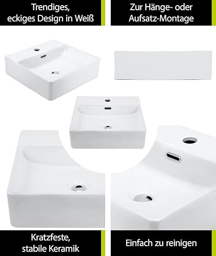 aquaSu® Hand-Waschbecken Cavo 42 cm | Eckiger Waschtisch mit Hahnloch | Überlauf | Kleines Hänge-Waschbecken quadratisch | Wand- oder Aufsatzmontage | 42 x 42 cm | Sanitärkeramik in weiß | 56223 2