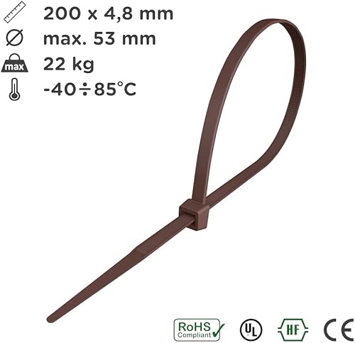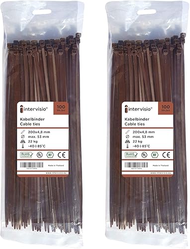 intervisio Kabelbinder 200mm x 4,8mm Farbe Braun Dunkelbraun 100 Stück