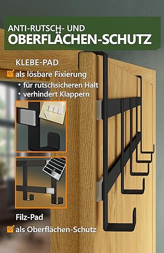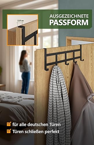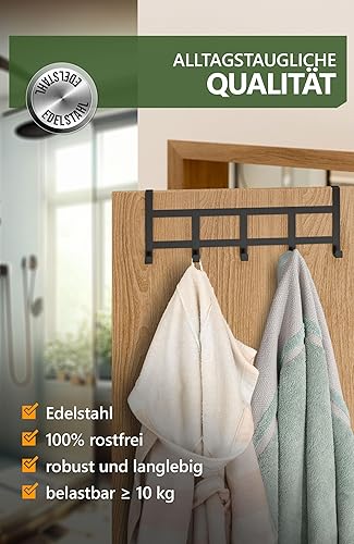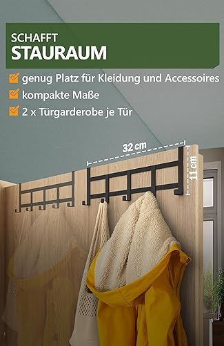 4smile Türgarderobe zum Einhängen - Universelle Türhaken für deutsche Türen, Kleiderhaken Tür - Stabile Türhakenleiste, Haken zum Einhängen als Ordnungshelfer, Fb. Schwarz