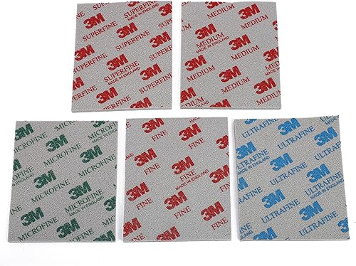 3M Soft Pads, 5 Stück, Schleifschwamm, Schleifpad, Schleifen und Polieren, Nass- oder Trockenschliff, Schaumstoff-Pads,waschbar und wiederverwendbar, Körnung: Medium,Fein,Superfein,Ultrafein,Mikrofein