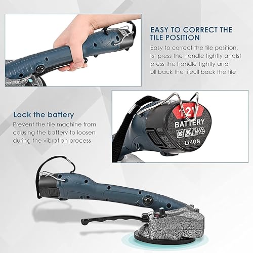 Do-Electr Akku Vakuum Saugheber Tragbare Fliesenvibrator mit 2 Batterien 10 Gänge Fliesen Saugheber mit Saugnapf für Bodenfliesen Und Wandfliesen