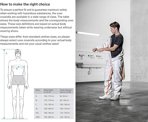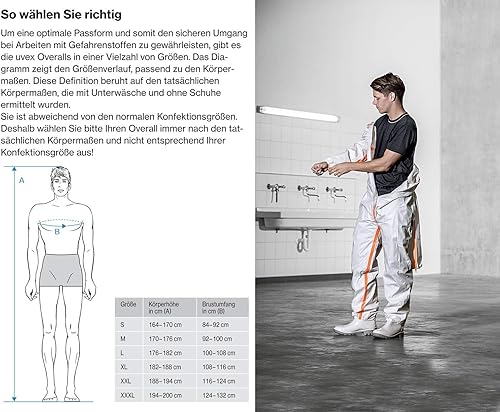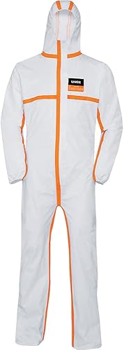 Uvex 4B Chemikalien-Schutzanzug - Weiß-Oranger Einweg-Overall - Partikeldicht XL