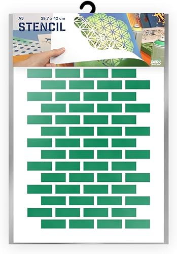QBIX Ziegel Wand Schablone - Rechteck Muster - A3 Größe - wiederverwendbare DIY Schablone zum Malen, Backen, Basteln, Wand, Möbel