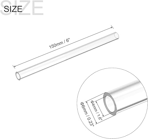 sourcing map Kunststoffrohr Starre Polycarbonat Rund Rohr Klar 0.16'(4mm) Innendurchm. 0.23'(6mm) Außendurchm. 6' (150mm) Hohe Wirkung für Beleuchtung Modelle Wasserleitungen