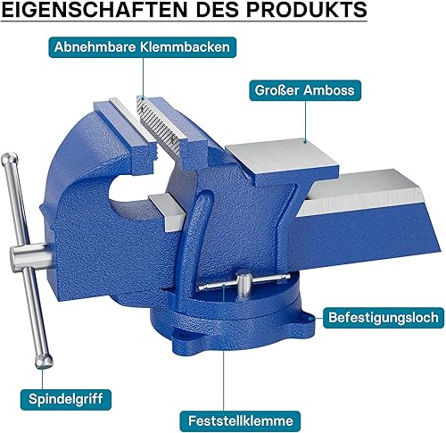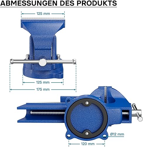 Wiltec Schraubstock Heavy Duty 125 mm Klemmbacke, Spannwerkzeug mit Amboss für schwere Beanspruchung für Werkbank