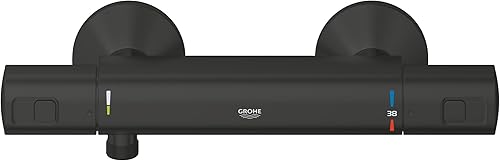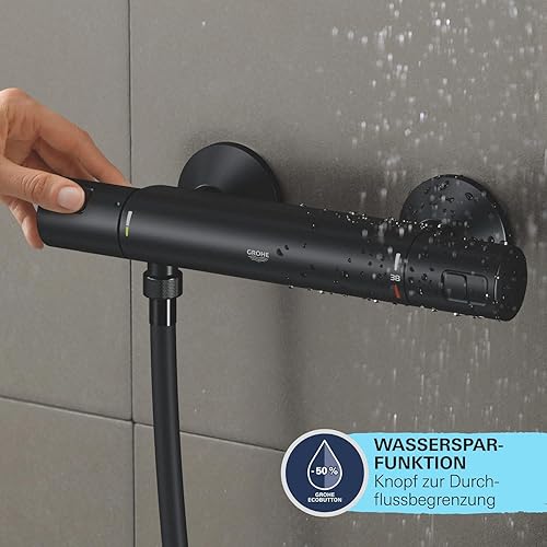 GROHE Precision Start - Thermostat-Brausebatterie (wassersparend, Sicherheitssperre bei 38°C, mit Rückflussverhinderer), matt schwarz, 345942430