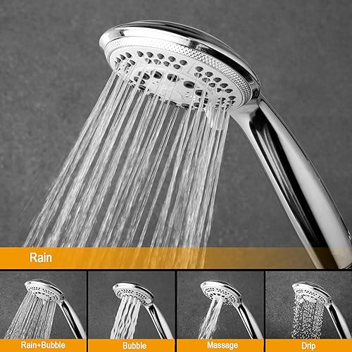GRIFEMA COMPLENTOS-G804 Wassersparende Handbrause, Gross (Durchmesser, 100mm), 3 Strahlarten/Runder Duschkopf mit Regendusche und Massage Funktion, Chrom