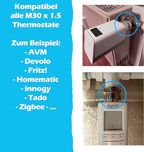 Heizkörperadapter M30x1.0 Feingewinde auf M30x1.5 Thermostat/Thermostatkopf/Thermostatkopfadapter BLUMKRAFT