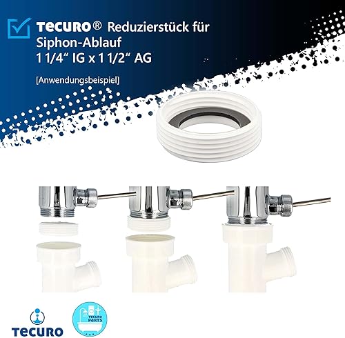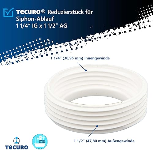 tecuro - Reduzierstück Adapter für Siphon-Ablauf - 1 1/4 Zoll IG x 1 1/2 Zoll AG - Kunststoff, weiß - 58722