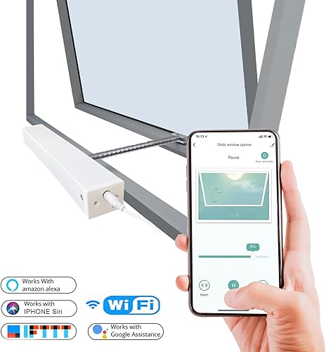 Olide Intelligenter automatischer Aluminium-Fensteröffner mit einstellbarem Hub, funktioniert mit Alexa und Google Home Assistant