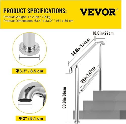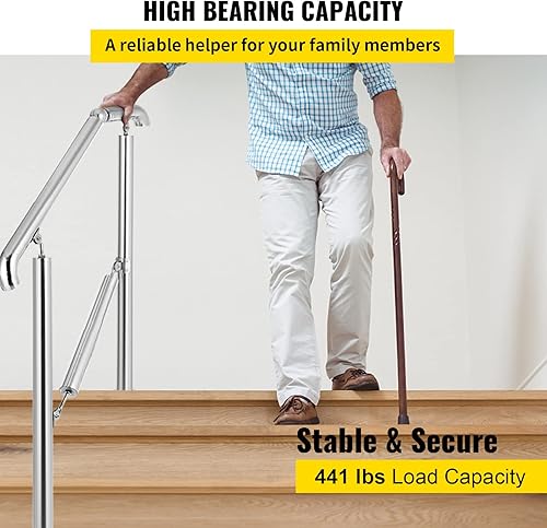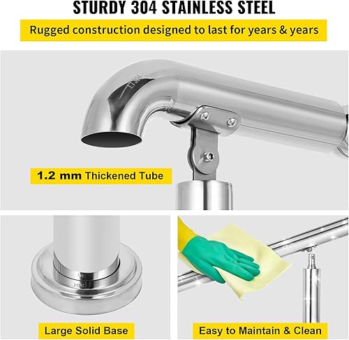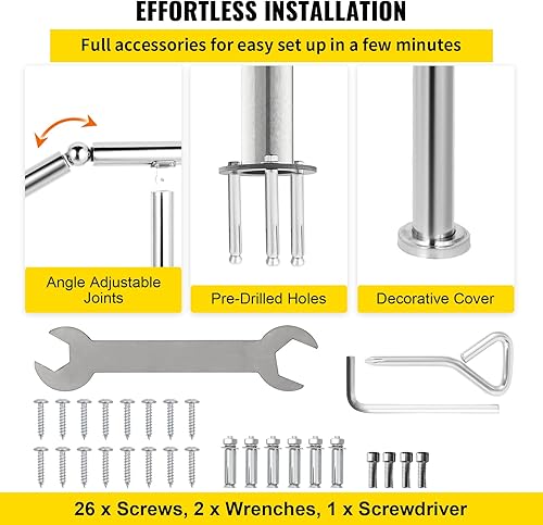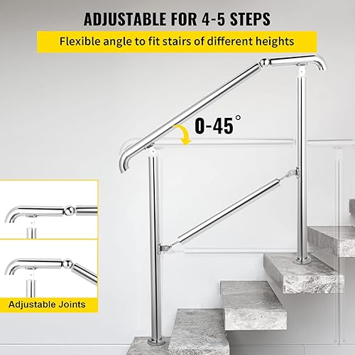 Happybuy Treppengeländer 3 Stufen, Hauseingang Handlauf Edelstahl mit Pfosten, Verstellbare Eingangsgeländer Silber, Winkel Einstellbare Treppengeländer Außen und Innen, 1 bis 3 Stufiges Geländer 1 m