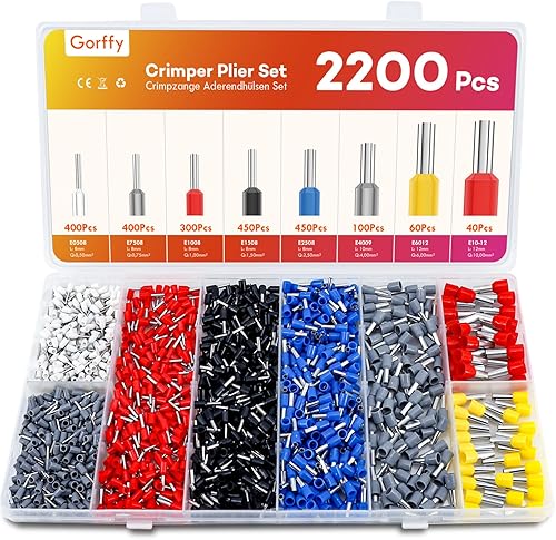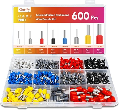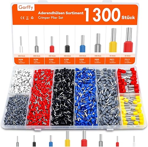 Gorffy Aderendhülsen Set 1300 Stück, Aderendhülsen 0,5 mm² - 10 mm², Isolierte Aderendhülsen Sortiment, Aderendhülse Set für Drahtverbindung