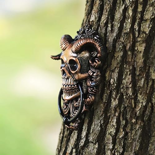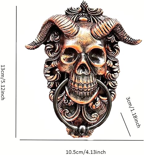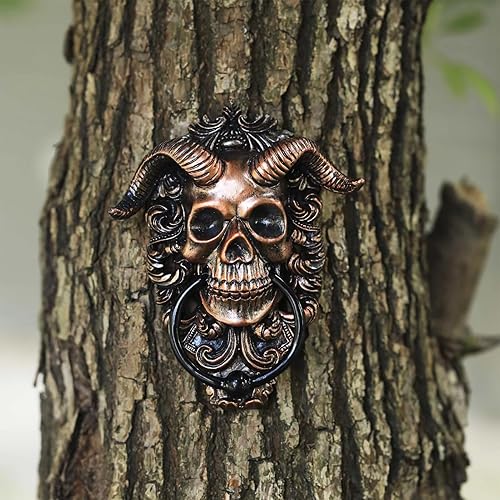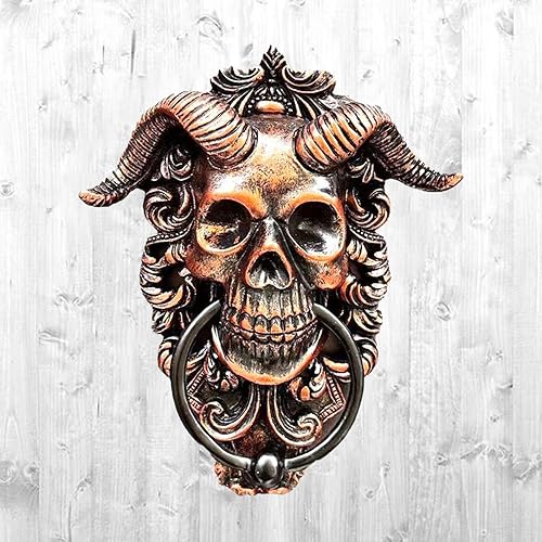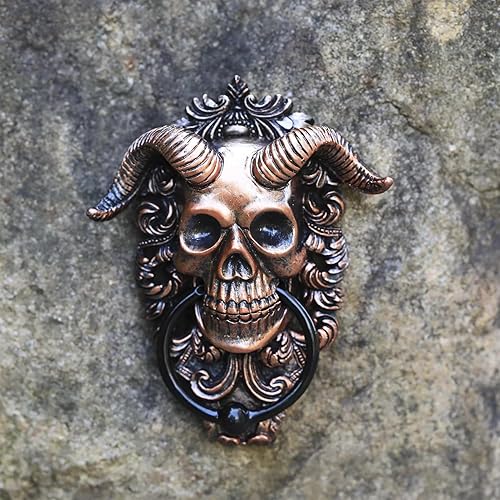 Hängender Gothic Türklopfer,3D Harz Hörner Totenkopf Wanddeko,Halloween Ziegenhorn Gott Hängender Türklopfer,10.5 * 13cm,Haustürdeko Totenkopf Skulptur, Wandhalterung Deko als Moderne Wanddekoration