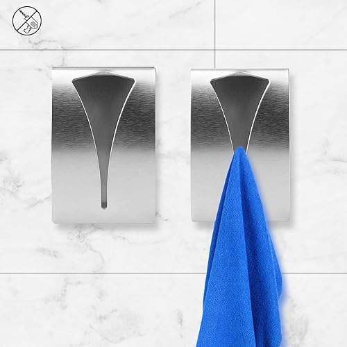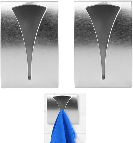 4 Stücke Selbstklebend Handtuchklemme, Edelstahl Handtuchhaken Geschirrtuchhaken, Handtuchhalter für Badezimmer und Küche, kein Bohren erforderlich (Silber)
