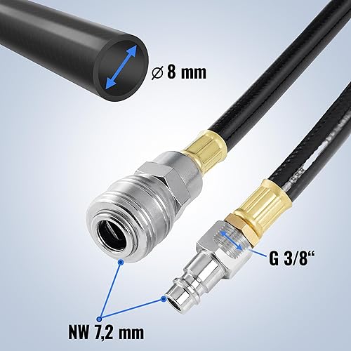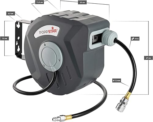 Poppstar Druckluftschlauchtrommel (Schlauch: 10m + 1m, Innendurchmesser 5/16'(8x12mm), 3/8'BSPT), Schlauchtrommel mit Automatik Aufroller für Druckluft Schlauch Grau
