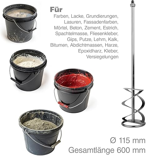 Spiralförmige Wendelrührer Schaft M-14 Gewinde 115/600 mm Rührstab für Betonmischer mit M14 Aufnahme