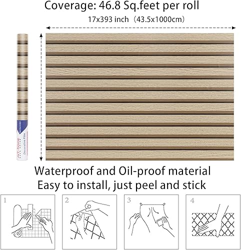 Arthome Holzoptik Lamelle Tapete Selbstklebende Abnehmbar Abziehen und Aufkleben Klebefolie 44cmx10m Vinyl Dekorative Holzstreifen Maserung Papier für Möbel Leicht reinigen(Braun)