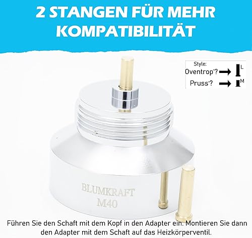 BLUMKRAFT Metalladapter für Heizkörper OVENTROP und PRUSS M40 x1,5 (Prototyp) auf M30 x 1,5 für Thermostat/Thermostatkopf M30 x 1,5 männlich