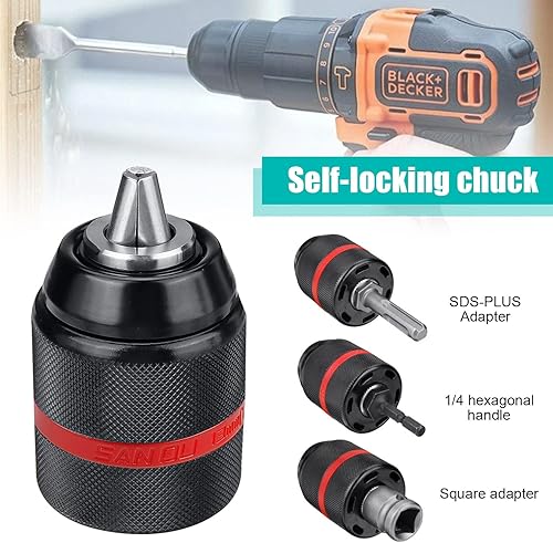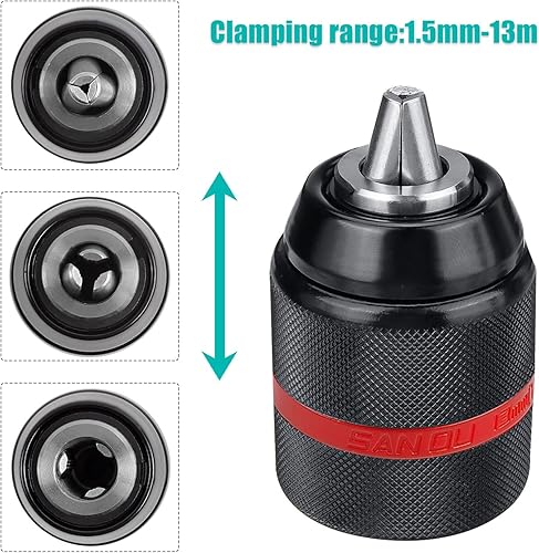 SDS Metall Schnellspannbohrfutter, Bohrfutter Adapter Sechskant Spannweite: 1.5-13 mm, Bohrfutter Innengewinde: 1/2' - 20 UNF, SDS Bohrfutter Außen-Ø: 42.9 mm, für Handbohrmaschinen. (1)