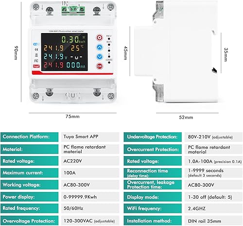 Stromzähler 3 phasen 100A 380V AC Drehstromzähler Smart meter wlan Zweirichtungszähler Mit Zeitsteuerung/Unterspannung/Überstrom/dreiphasige Unsymmetrie/Phasenverlust/Überstromverzögerungsschutz.