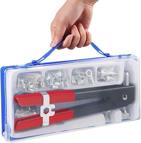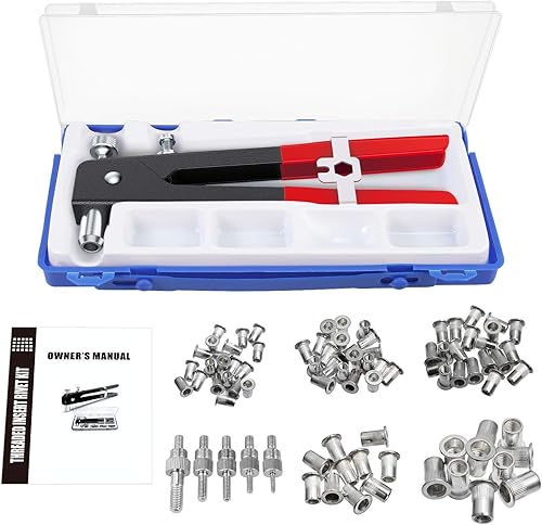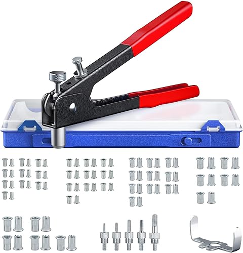 eSynic Nietzange Set 86 Stück Nietmutternzange Set Gewindenietzange Nietpistolen Werkzeug Gewinde Blindnietzange Popnietenzange Einnietmutternzange Set M3 M4 M5 M6 M8 Dorne und 80pcs Blindnietmuttern