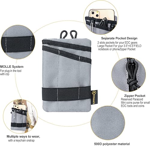 Kosibate EDC Pouch, EDC Storage Pouch, Mini Tool Pouch - Männer schlanke Tasche Organizer für jeden Tag tragen (Grau)