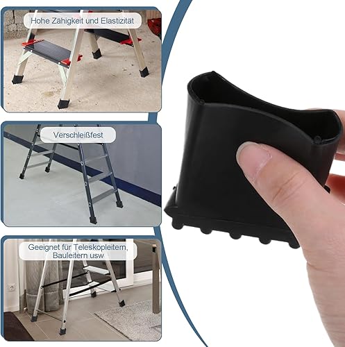 4 Stück Leiter Füße - Ersatzfüße für Haushaltsleitern, Gummi Leiterfüße, Schutzkappen für Leitern, Ersatz Leiterkappen, Trittleiter Füße, Leiterfuss Ersatzfuss für Leiter Ersatzteile, 50x25mm