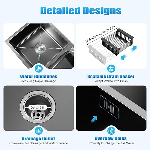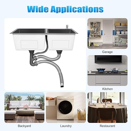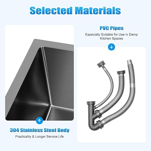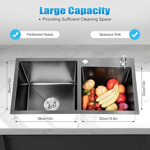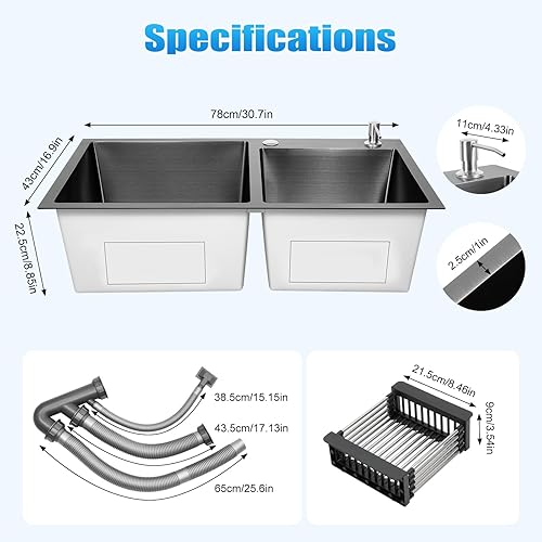 Edelstahl 304 Unterbauspüle Doppelspüle Küchenarmatur Unterbauspüle Rechteckige Spüle 78 x 43 x 22 cm Schwarzes Set