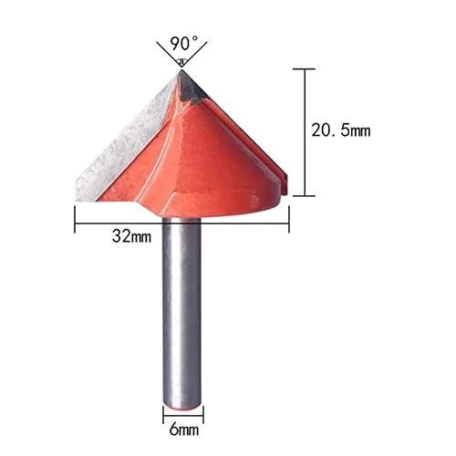 V Nutfräser V Formfräsen Holzschneider Messer CNC Fräser Wolframstahl Graviermaschine Fräser 90 Grad 6 mm Schaft 32 mm Fräserdurchmesser Gravur Rot