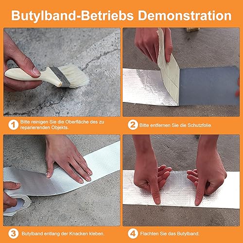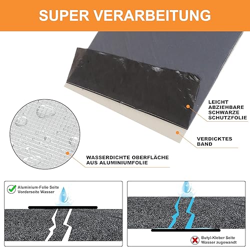 ViShawtek Butylband Wasserdichtes Aluminium Klebeband Dachpappe Selbstklebend Bitumenband Reparatur-klebeband Alufolie Dickes Dichtband zum Abdichten im Pool Loch Wohnmobil Bad 5cm(B) x 5m(L)