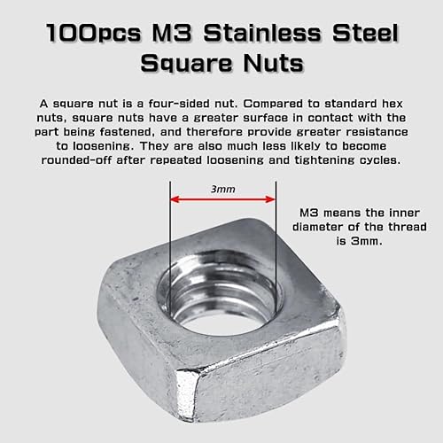 100 UNIDs M3 DIN557 metrischem Mutter Muttern quadratisch SS304 Mutter Edelstahl für BH, quadratisch, Farbe Silber