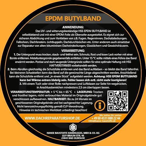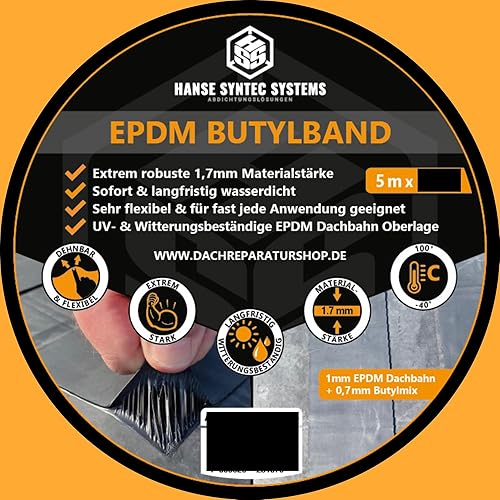 HSS Butylband EPDM 1,7mm Stärke (10cm Breite / 5m Länge) extra dickes Abdichtungsband, Hochwertiges Dichtband mit EPDM, Butylband, Alterungs -, Korrosions - und UV - beständigband