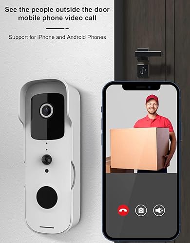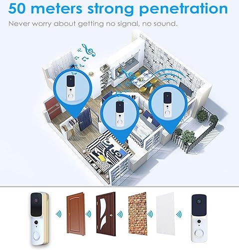 Winnes Kabellose Türklingel mit Kamera, 1080P HD, IP65, wasserdicht, 155 ° Weitwinkel, mit PIR-Nachtsicht, Bewegungserkennung, 2-Wege-Audio-Funktion für Zuhause, Klassenzimmer, Hotel