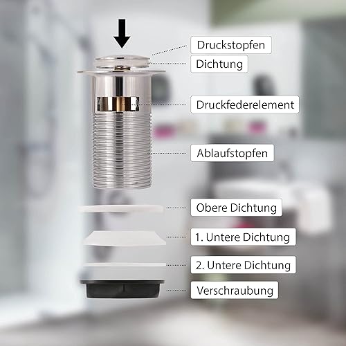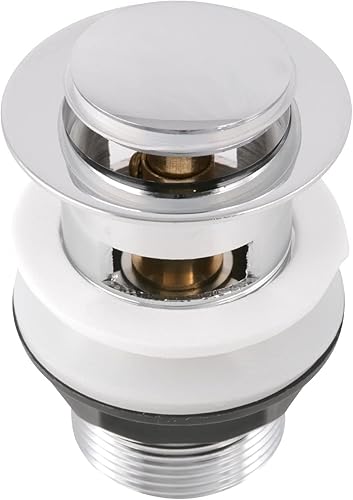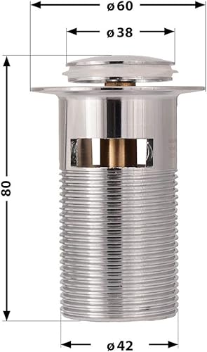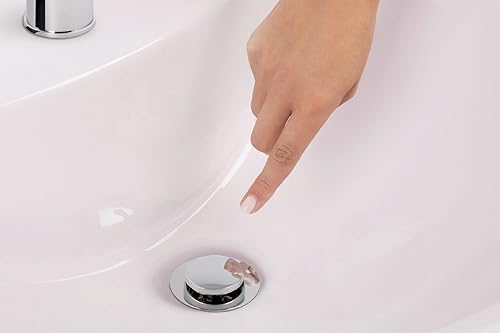 Sanitop-Wingenroth Pop-Up-Ventil | verschließbar durch Drücken | für Waschbecken mit Überlauf | chrom | rund | Standard-Anschluss: 1 1/4 | 80 mm Schaftlänge | Stopfen: Ø 38 mm | Metall | 22553 3
