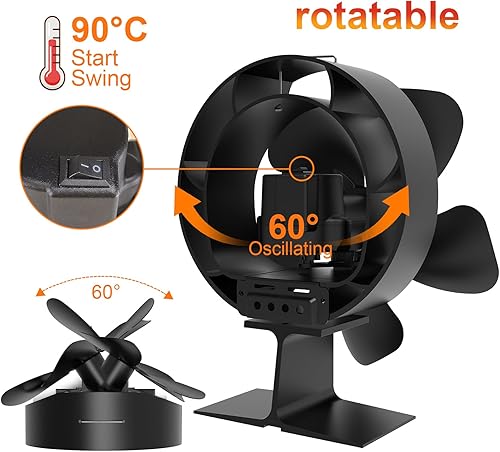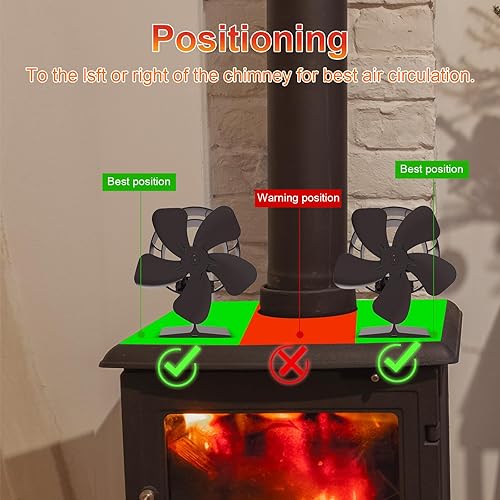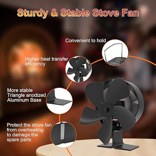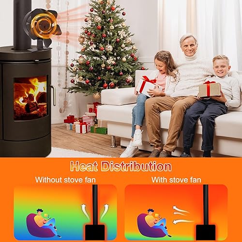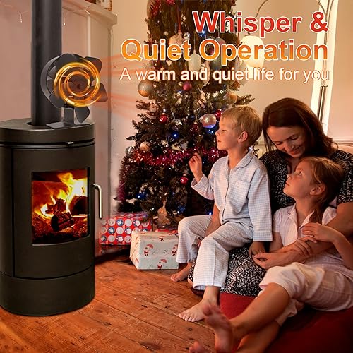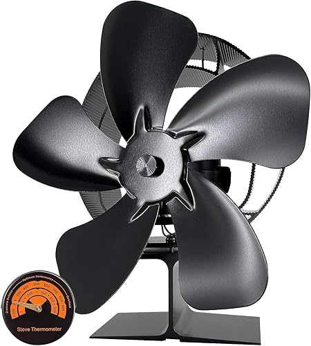 Jumoking Ofenventilator 5 Flügel Kaminventilator,Ofenventilator ohne Strom, Kamin Ofen Ventilator, Holzofen Ventilator mit Thermometer,Leiser Kaminlüfter War