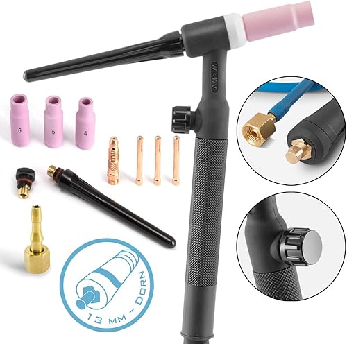 STAHLWERK WP-17V Universal Lift-Tig-Brenner/Schweißbrenner mit 4 m Schlauchpaket und 13 mm Dorn